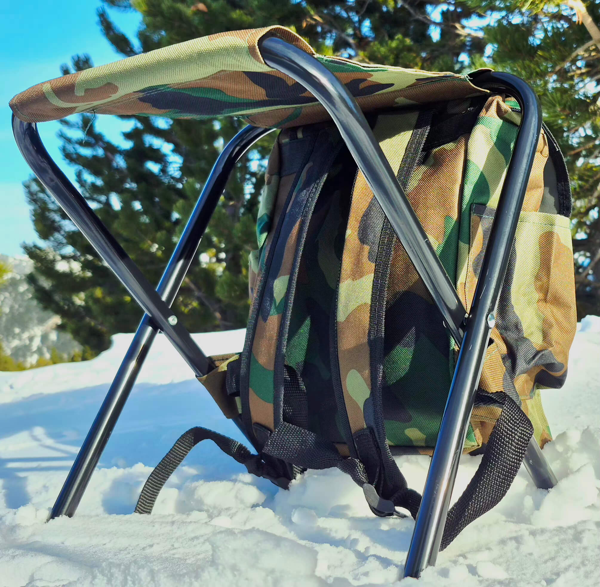 La mochila que se adapta a todas las situaciones. Transporta todo lo que necesitas y descansa donde quieras, sin cargar con nada extra. Su diseño innovador integra un taburete resistente y plegable, perfecto para viajes, senderismo, ski, festivales, pesca o largas esperas.